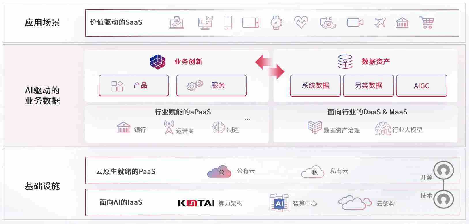 数字时代,,,,围绕企业数字化转型的关键要素,,,manbet数码开创性的提出数云融合战略和技术体系框架,,,着力在云原生、、、数字原生、、、AI原生和信创产业上架构产品和服务能力,,,为处在不同数字化转型阶段的快消零售、、、、汽车、、金融、、医疗、、政企、、教育、、、、运营商等行业客户提供泛在的敏捷IT能力和融合的数据驱动能力,,,,构建跨界融合创新的数字业务场景和新业务模式,,助力企业级客户建立面向未来的核心能力和竞争优势,,,,全面推动社会的数字化、、智能化转型升级。。。