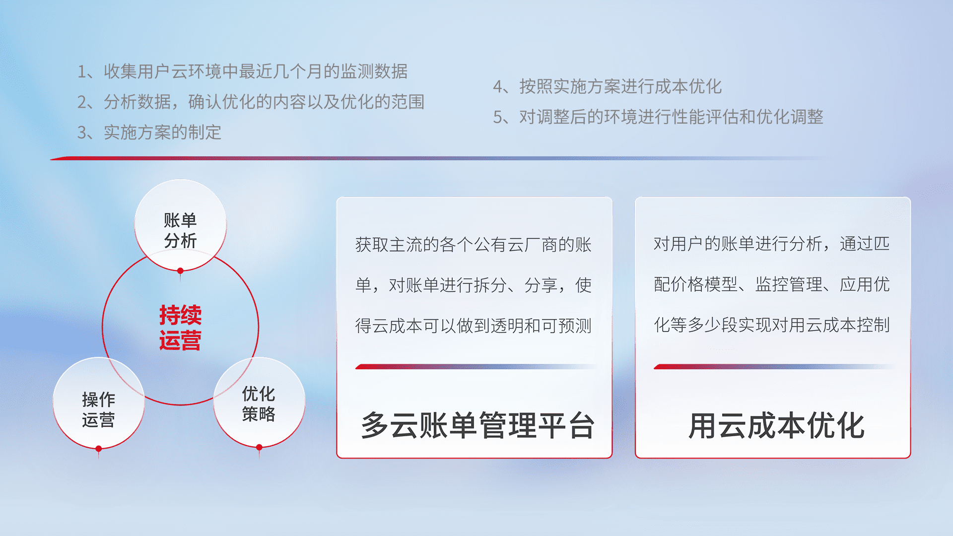 监控业务系统资源开销,,对资源的消耗精确计量,,,实现费用的透明化管理,,,,不断提升资源使用率,,,,调整资源购买方式,,,,降低资源费用成本,,用云成本可预测、、、、用云费用可优化,,,云资源配额有据可依。。